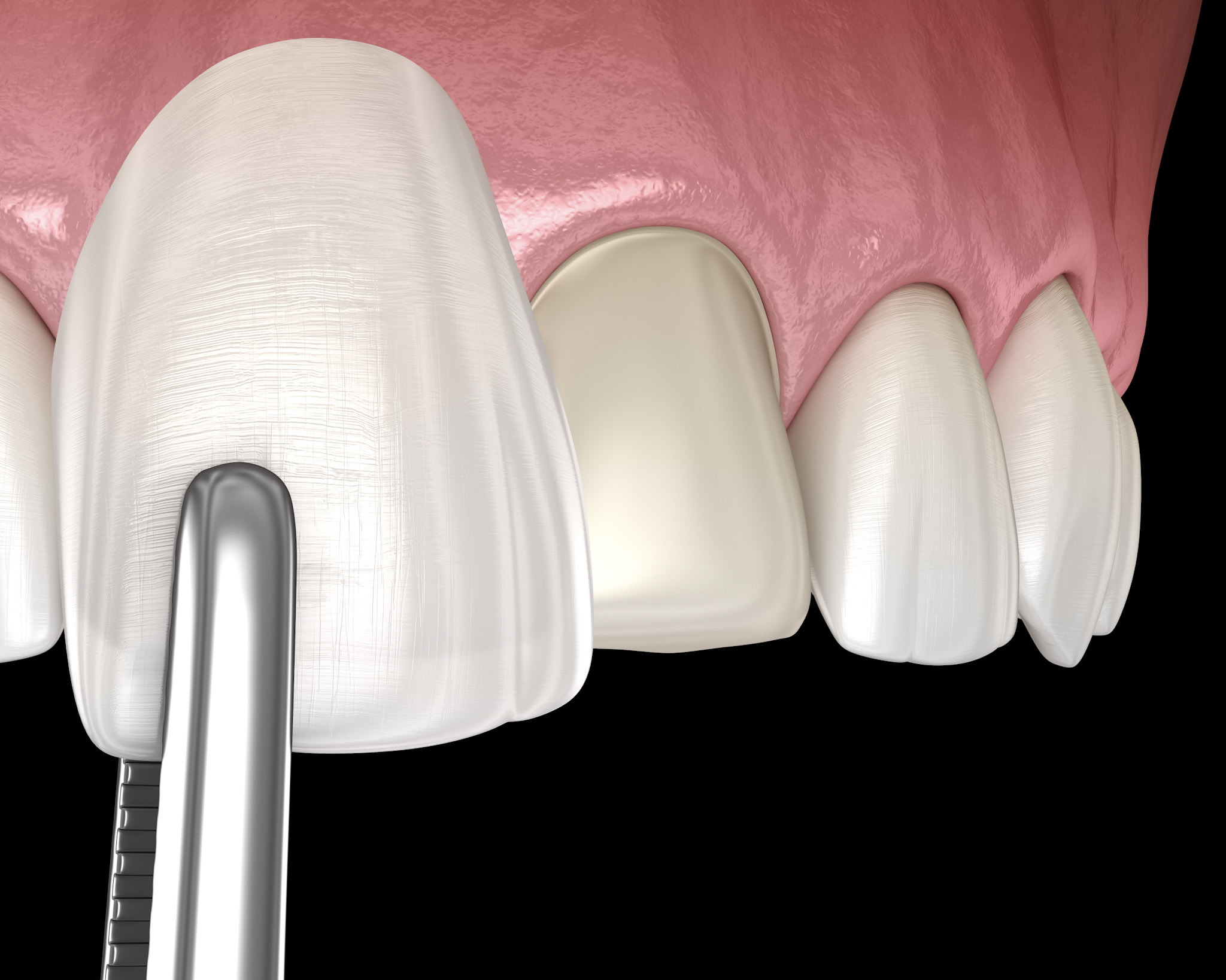 Porcelain veneers are custom-made coverings for the front of your teeth. They are very thin and are bonded to your teeth by your dentist in order to change the look of your teeth. You can have veneers placed on as many teeth as you would like, whether that be just one or your entire mouth. Veneers are meant to fix both structural and cosmetic issues, such as chips, gaps, discoloration, worn down teeth, etc. Porcelain veneers are designed to be long lasting, allowing you to benefit from them for many years, if not a lifetime. Come visit or call our Santa Clarita and Valencia CA office to learn more about veneers.