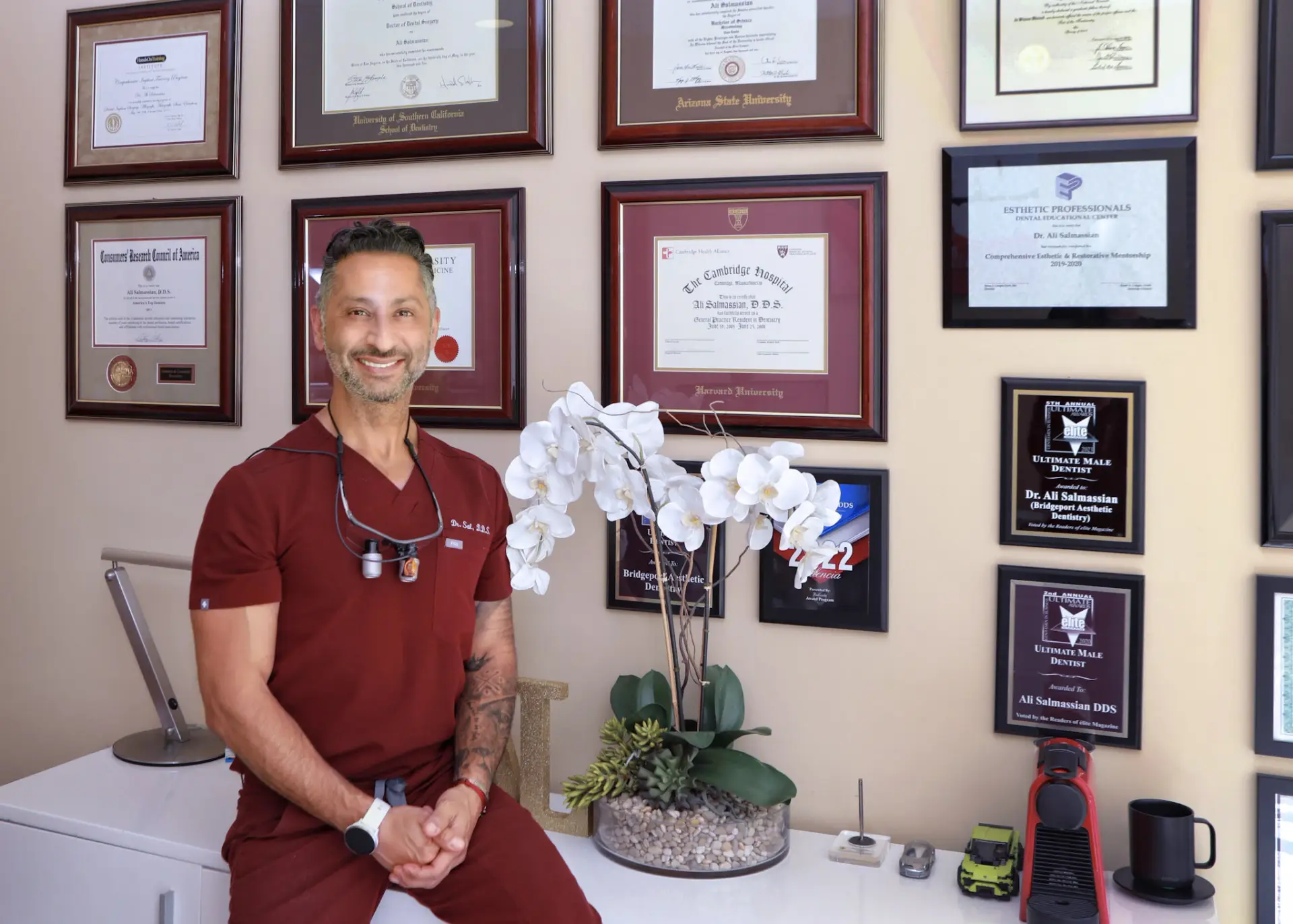 Dr. Salmassian extensive education began at Arizona State University where he received his B.S. degree in Microbiology with honors, Cum Laude. He then obtained his Doctorate of Dental Surgery from the University of Southern California. He further pursued his education at the prestigious Harvard School of Dental Medicine, where he received Advanced Education in General Dentistry. By regularly completing continuing education courses and credentials in his field, Dr. Salmassian stays in the forefront of modern dentistry.
